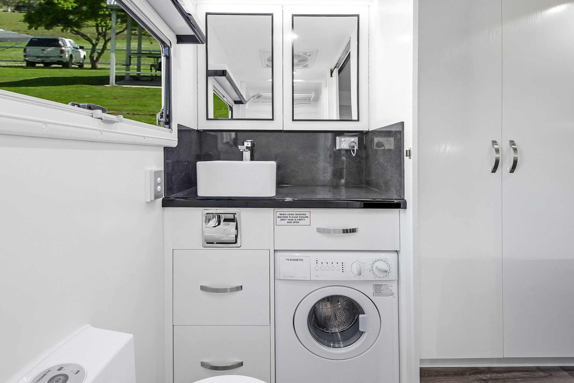 ✓ 220 litres of fresh water and 90 litres of grey water
